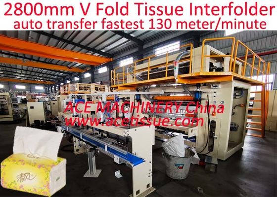Diese Gesichtsgewebe-Zwischenspaltmaschine, auch bekannt als Gesichtsgewebe-Konvertierungsmaschine oder Gesichtsgewebe-Papierverarbeitungsmaschine, hat eine hohe Zwischenspaltgeschwindigkeit von 130 Metern pro Minute,Welche ist die schnellste in China?Es ist mit einer 22 kW Taiwan Vakuumpumpe ausgestattet und verwendet V Fold Interfolding, um Box-Drawing Facial Tissue zu produzieren.
